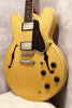 VG KTR-ES STD, natural gloss, made in Japan 2017. The VG 'Key to the Rock' series is a collaboration between Japanese music retailers Musicland Key and the esteemed Terada Gakki factory, providing acoustic and semi-acoustic guitars that sit alongside the also outstanding Crews Maniac Sound solid-body electrics. If you know you MIJ guitar factories, you'll already be paying attention: Terada made all those superb Orville by Gibson models in the eighties and nineties and still make the A$4k+ Gretsch Pro Series guitars today. The quality of materials and build on offer here is truly exceptional. The neck is a comfy round 1960 style shape, carved from a gorgeous piece of tightly grained African mahogany and streaky chocolate Indian rosewood. The natural finish on the neck lets the gorgeous deep red-brown of the mahogany show off, it's such a classy piece of timber. The body is a traditional 5-ply North American rock maple top, back and sides, paired with a 3-ply spruce and maple centre block. Again, the gorgeous gloss nitro finish allows the alluring wide grain lines of the maple do the talking, and paired with the 5-ply binding and tort guard, this is a very attractive item indeed. The spruce in the block adds a little low-end focus and tightness to the tone, which is where the real magic is. Even before you plug it in, every little note rings truly and proudly out at the lightest touch through the lightweight body. The neck pickup is dense and full with a gorgeous rolling baritone voice, which is balanced by a certain bell-like clarity and sweetness in the top end, ensuring no detail goes missing. The bridge pickup is creamy and open, with an expansive midrange that lends chords depth and complexity and brings out the nuance of every note in a lead line. The middle position is my favourite, the pickups sing beautifully together in contrasting harmony. This guitar will seriously scare USA-made instruments at 2-3 times the price, it's hard to overstate just how satisfying this is to the hands and ears in person. But yeah, bit of a weird name, right?